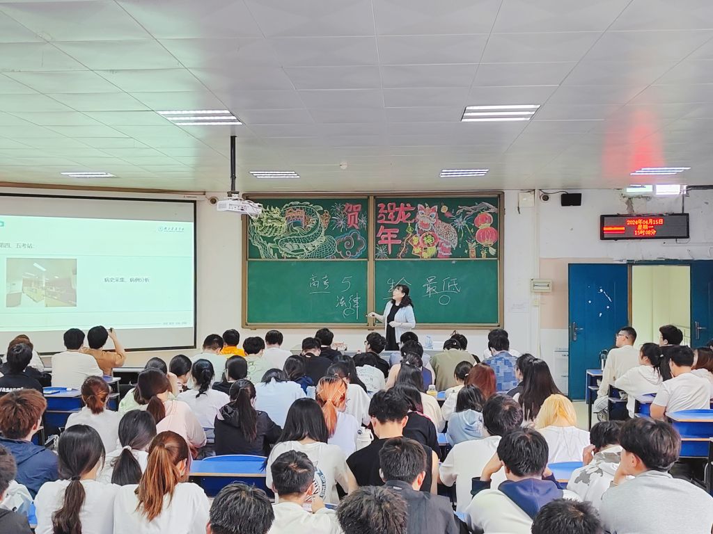 (通讯员 梅显运 屈芳慧)4月15日下午、16日上午,口腔医学院分党委书记许珊深入到2023级、2022级口腔本科生班教室,开展“口腔医学执医考试情况分析”专题讲座,分团委副书记梅显运、辅导员曾玲,两个年级全体学生参加。