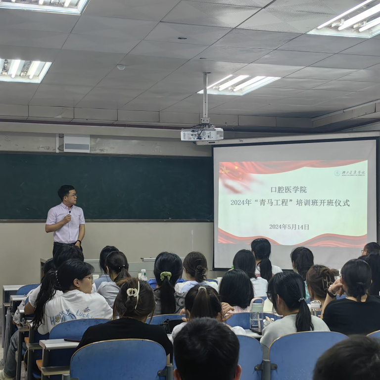 (通讯员 梅显运 李鑫怡)5月14日下午,口腔医学院2024年“青马工程”培训班在2111教室举办开班仪式。学院党委副书记林宝虎、学工办主任吴卉、辅导员曾玲及40名团学骨干成员参加。学院团委副书记梅显运主持。