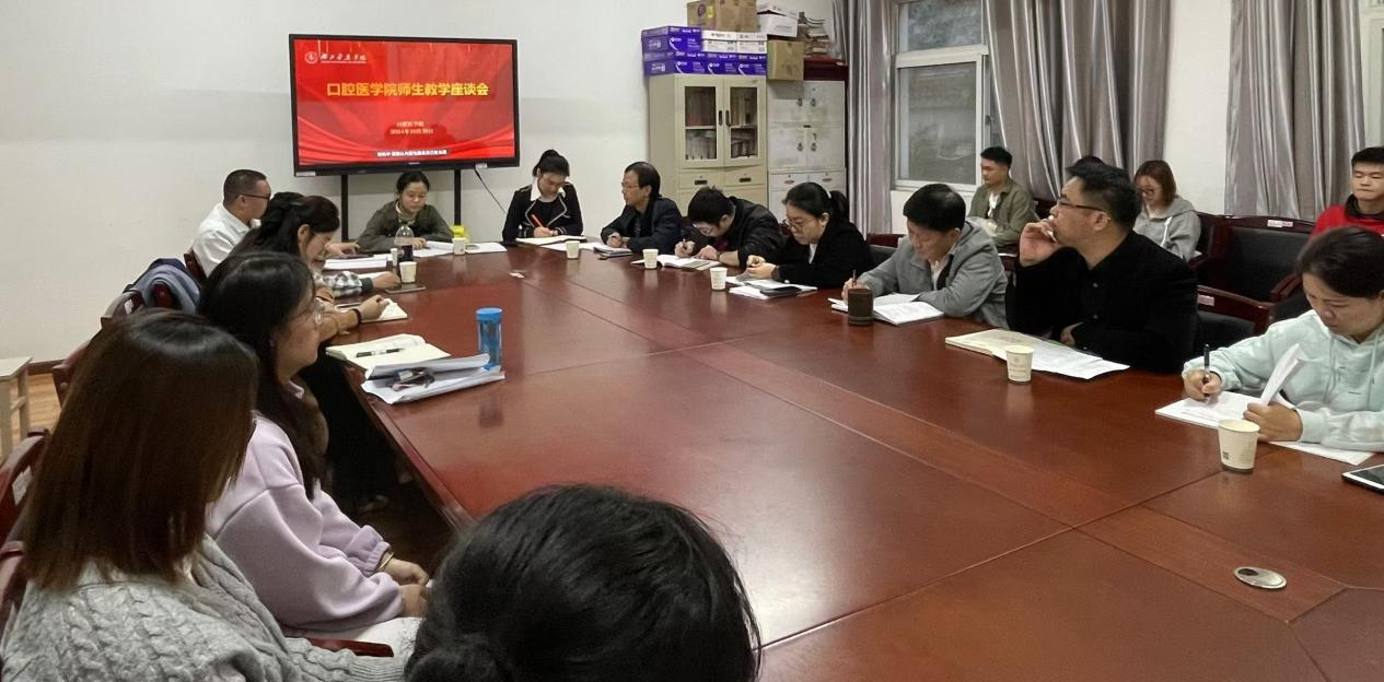 (通讯员 陈梦晓)10月30日下午,口腔医学院在学院二楼会议室召开2024-2025-1学期师生教学座谈会。学院党委书记秦赤子,教学副院长施优灵,各系教研室主任、教学秘书、教师代表、学生代表及教学办全体工作人员参加座谈,会议由施优灵主持。