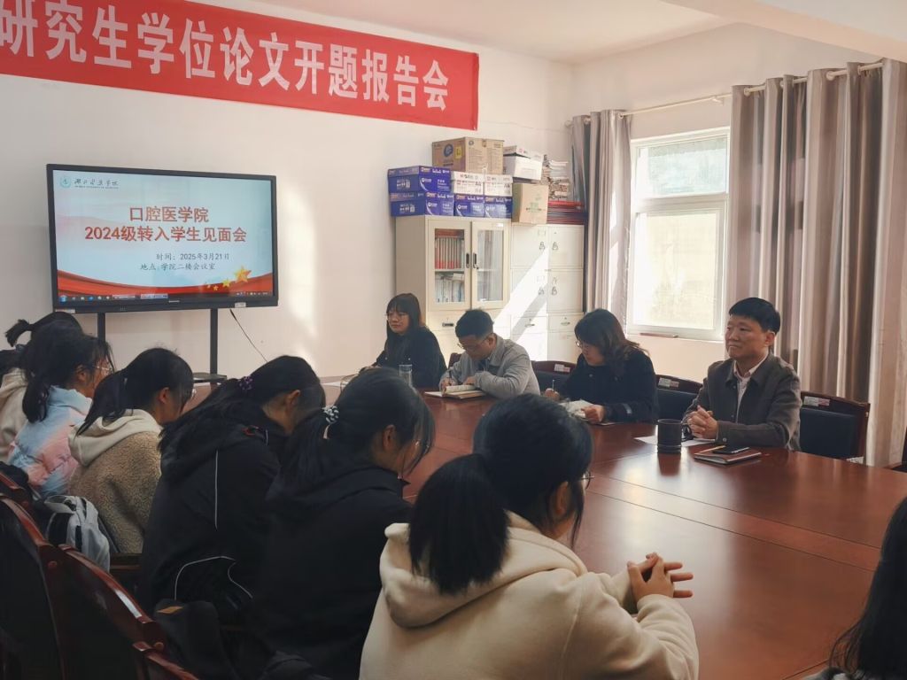 (通讯员 徐萍萍)2025年3月21日上午,口腔医学院在学院二楼会议室召开了2024级转专业学生见面会,学院党委书记秦赤子、副书记吴卉、全体辅导员老师及15名转专业学生参会。