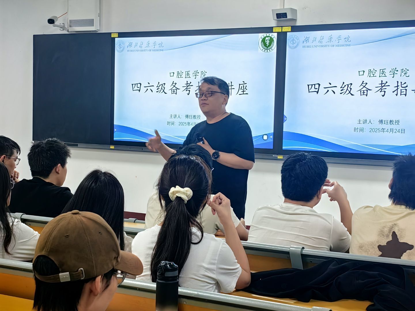 (通讯员 秦郡)4月24日下午3点,口腔医学院邀请外语科部主任傅珏老师在3201教室开展公共英语四六级备考指导讲座,学院低年级学生积极参与,现场气氛热烈。
