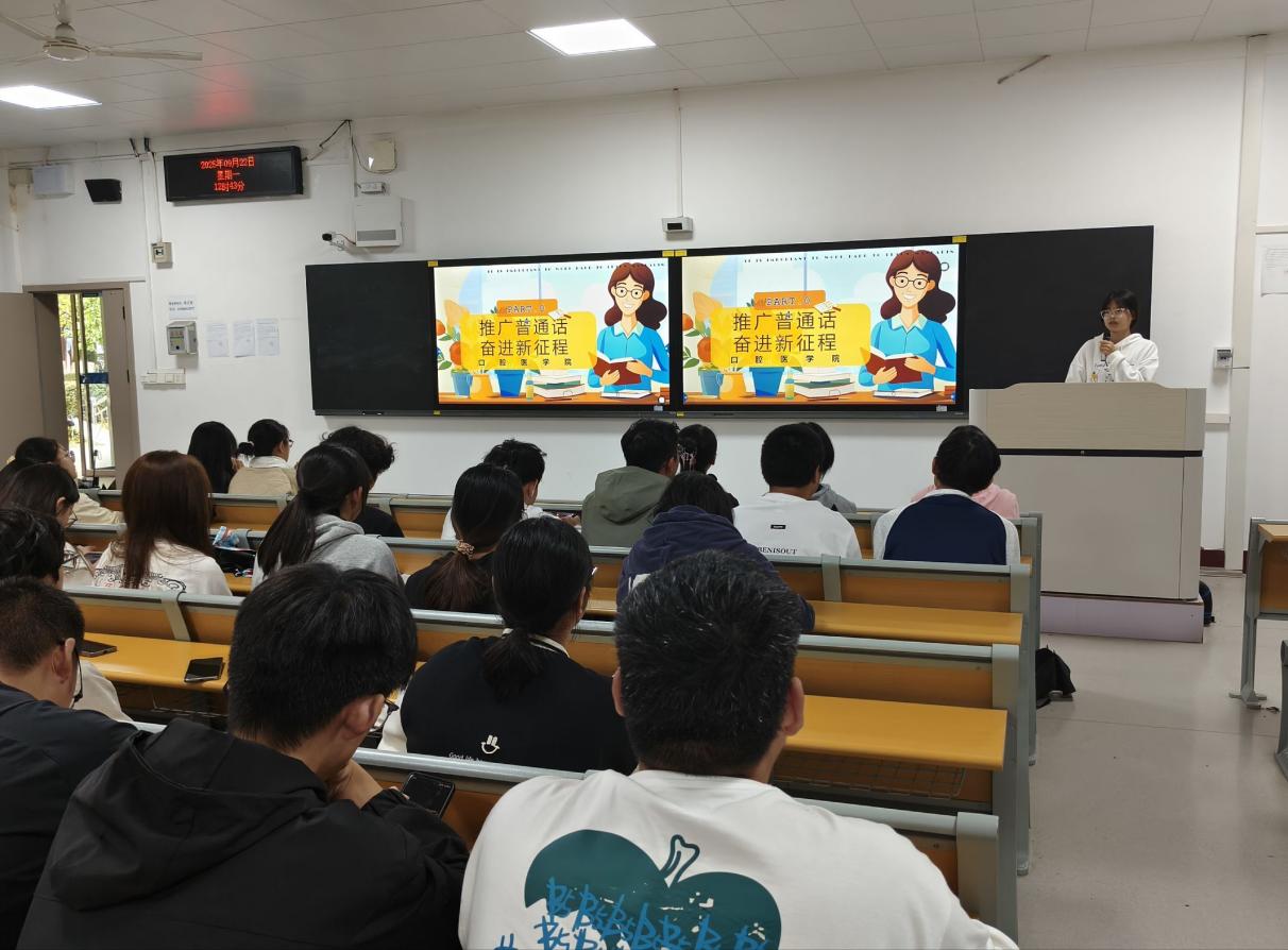 2025年9月15日至21日是第28届全国推广普通话宣传周。口腔医学院本次活动旨在营造良好的校园语言文化环境,促进语言文字规范化建设,营造一个“人人讲普通话,人人用规范字”的良好氛围。(审稿 吴卉)